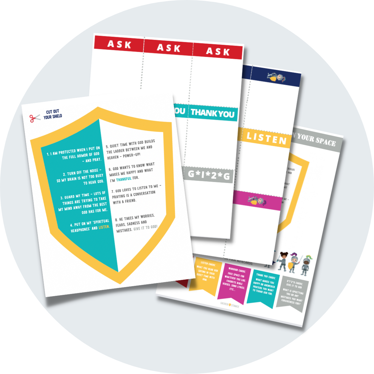 So there you have it, from my experience with my kids! I have a feeling you’re going to be on Amazon ordering throw pillows and Bible highlighters after realizing the benefits of creating a prayer space with your child! I know what a difference it makes, so I want to help get you started. CLICK HERE to get my FREE Digital Prayer Space Kit for Kids. Download, print, and you and your kiddo will be starting your prayer party in no time! I’ll also hop into your inbox and walk you through ways to use the tools in the coming weeks. Oh, and one last thing, go ahead and add those fun string lights to your Amazon cart; your kids will love them in their prayer space!